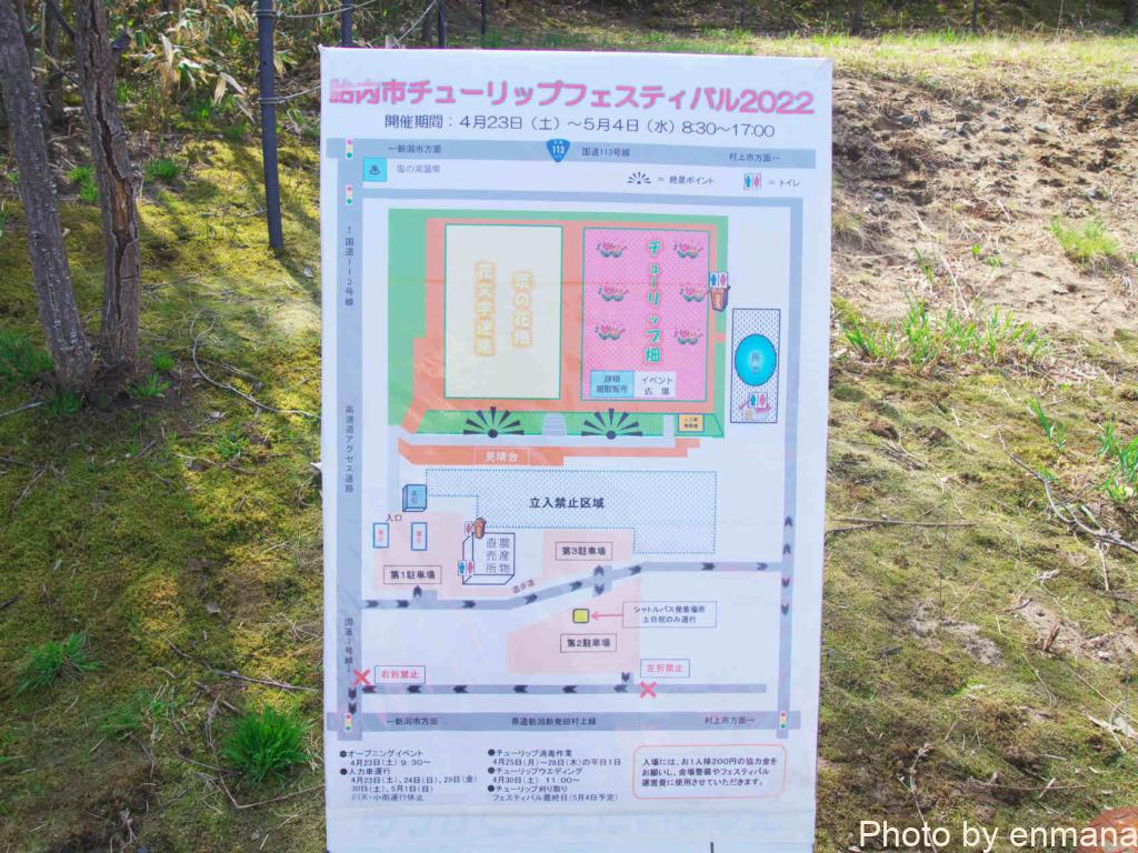 ちなみに胎内市チューリップフェスティバルの会場案内図はこんな感じです。