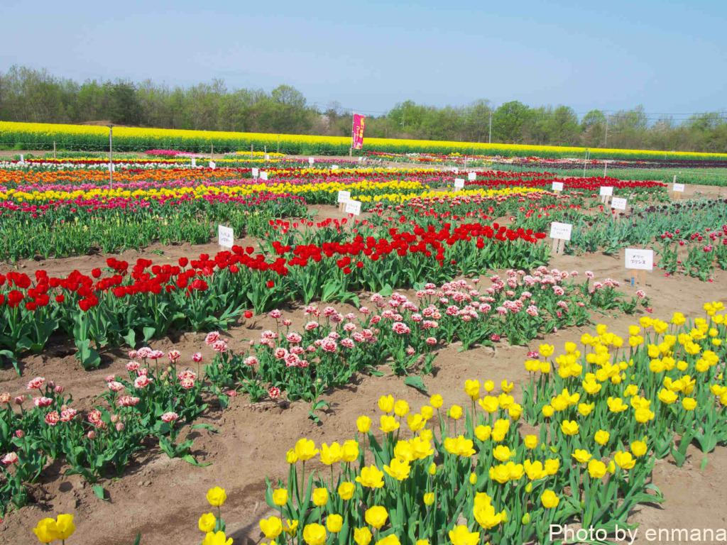 視線が高くなるので、チューリップ畑も菜の花畑も一望できました。