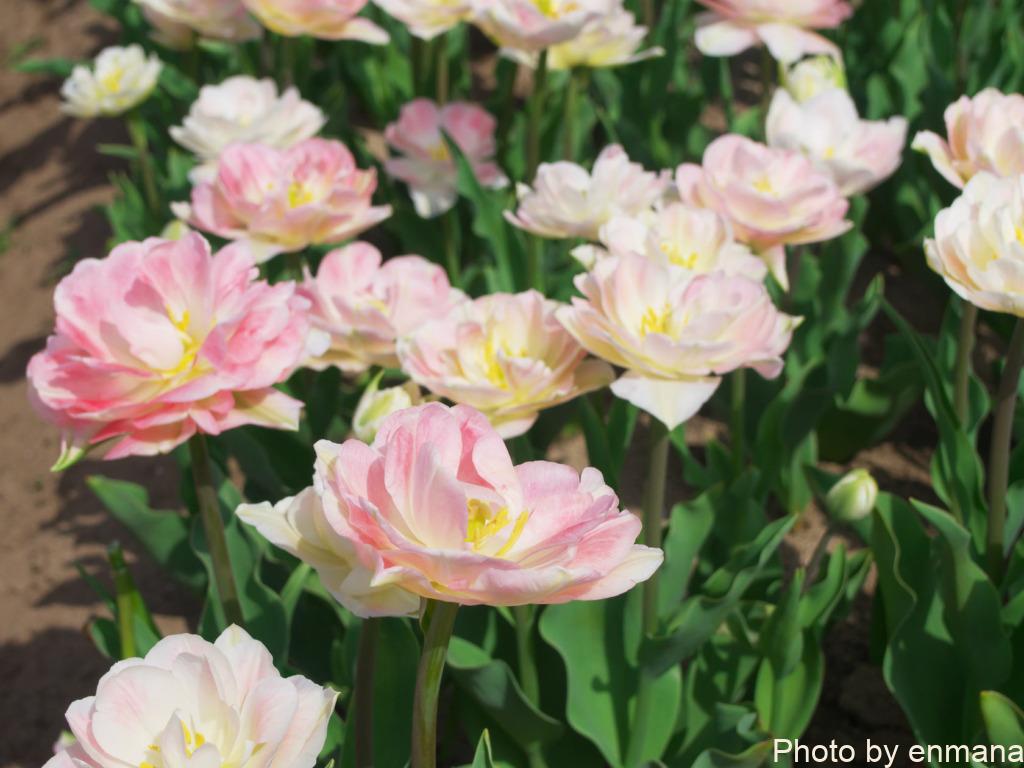 変わった形のチューリップの花も咲いているので、珍しいものを見ることができますよ。
