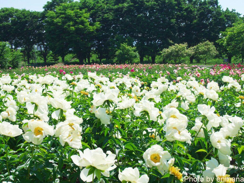 写真に写っているのは、しゃくやく園で、左側の方にも園が広がっていますよ。
