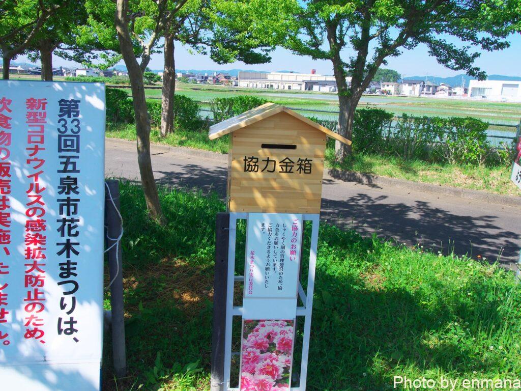 五泉市のしゃくやく園は入園料はかかりませんが、協力金として100円を募集しています。