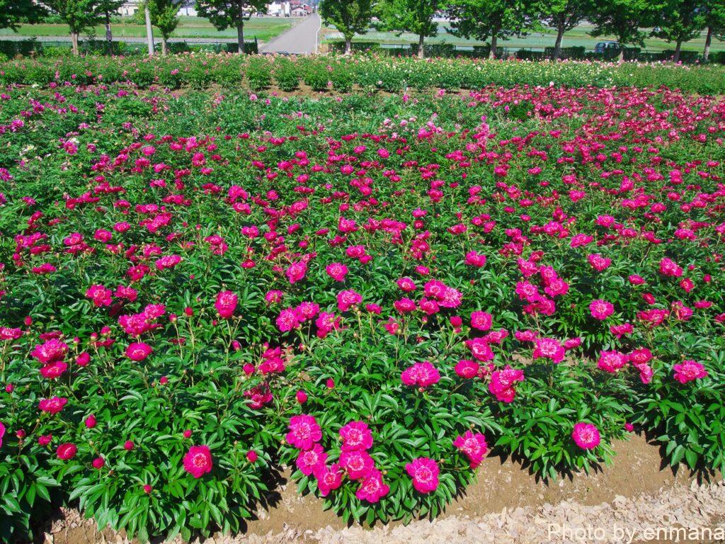新潟県五泉市のしゃくやく園では、しゃくやくとボタンを掛け合わせたハイブリッドシャクヤクの数が日本一です。