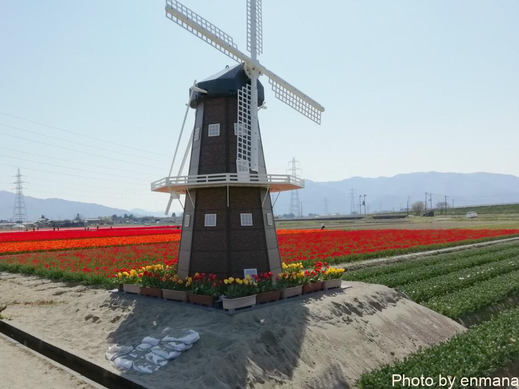 チューリップ畑とこの風車は良く合いますよね。