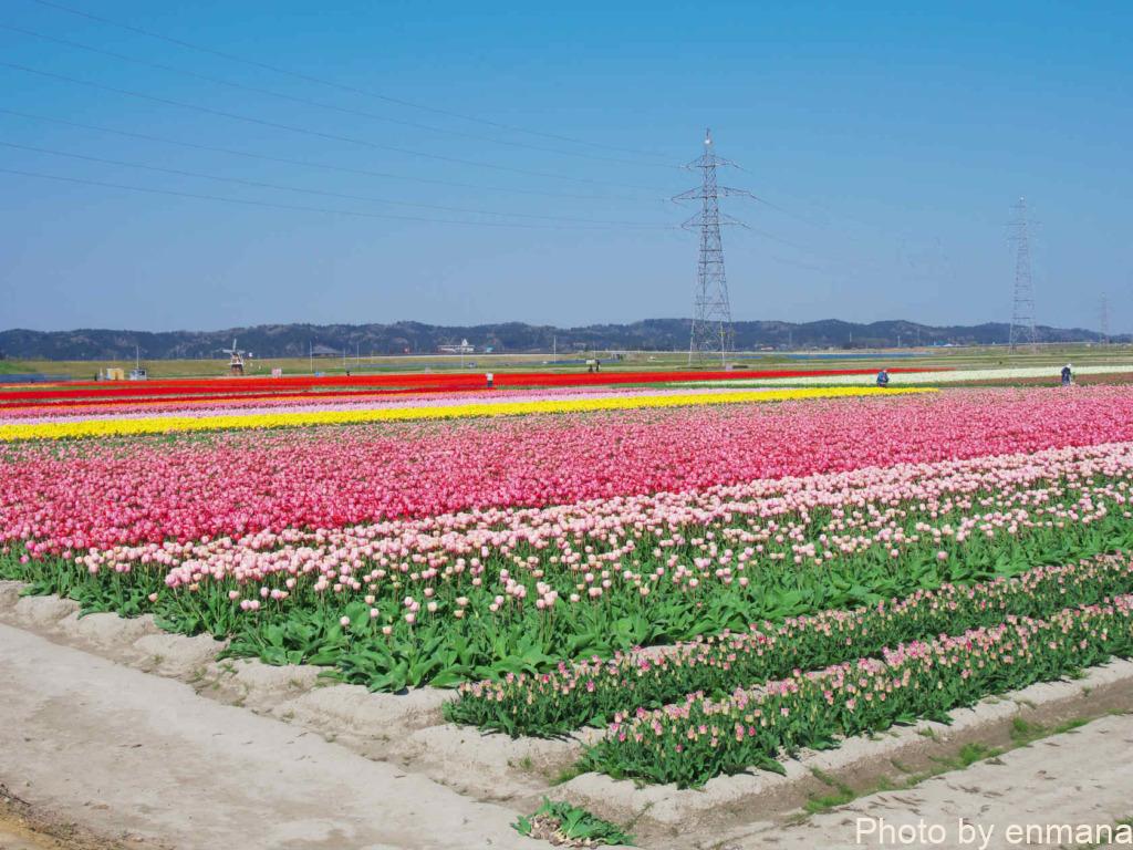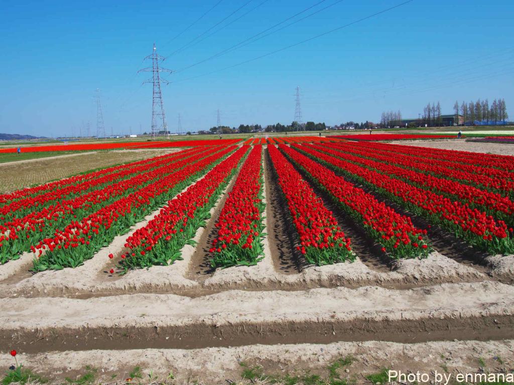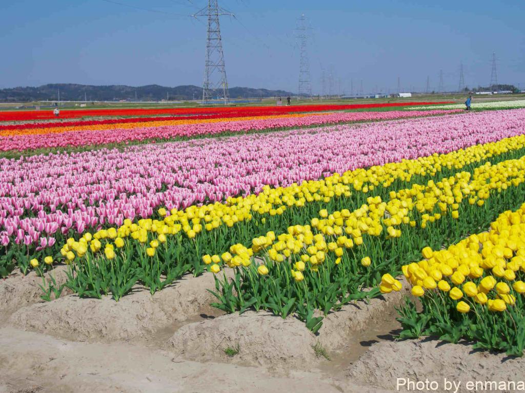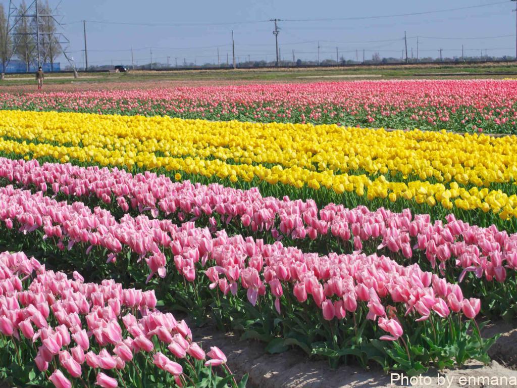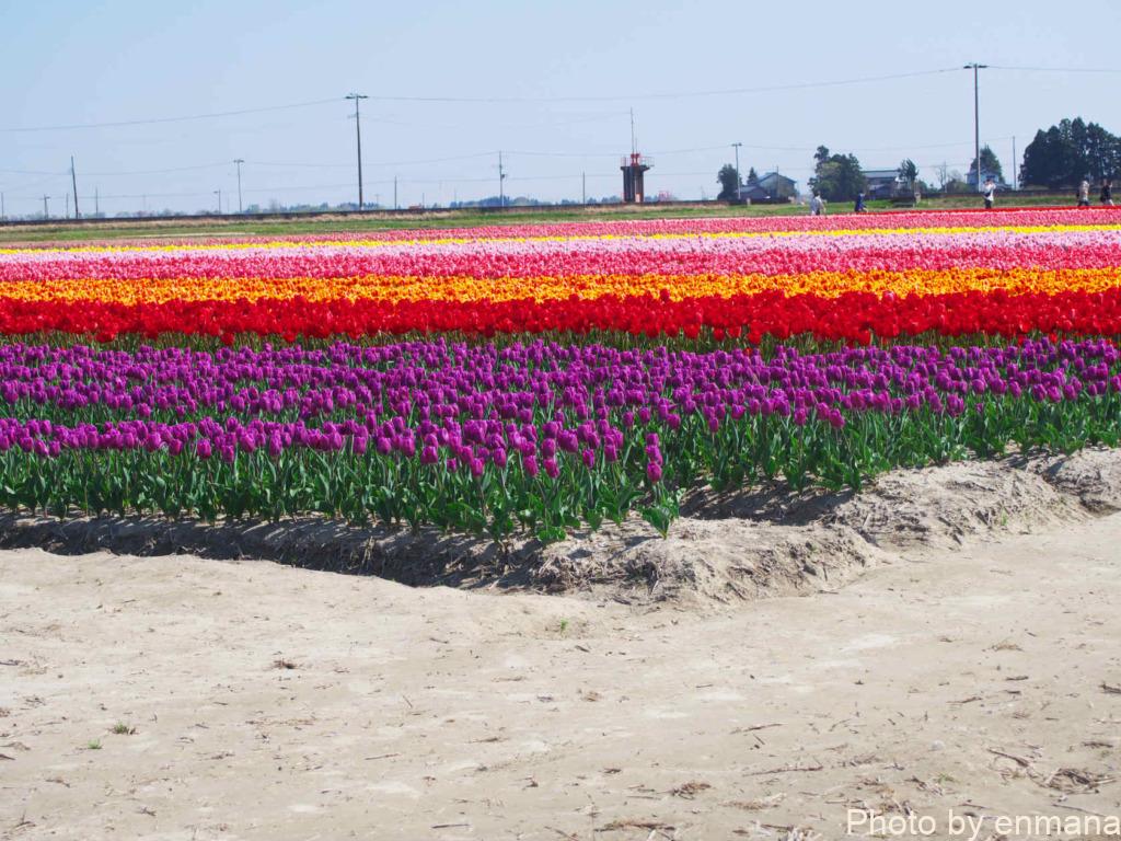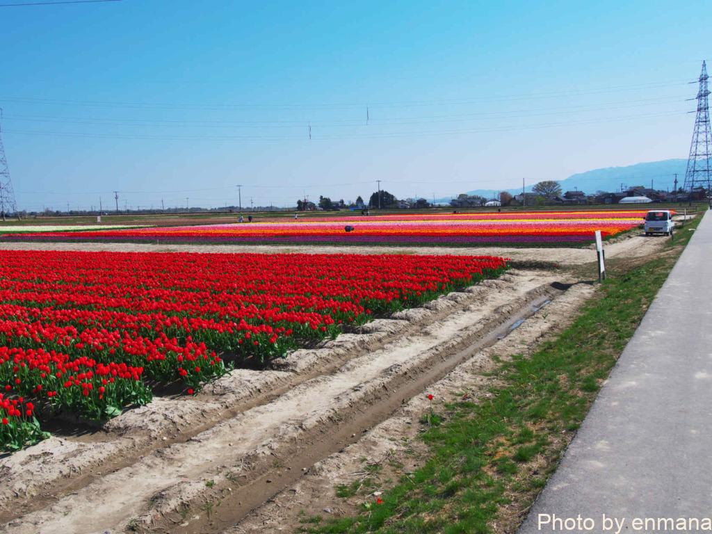 チューリップまつりを行っているといっても、そのチューリップは農家さんの生産物です。市が生産者の皆さんに依頼してチューリップの畑を1か所に集めることで、チューリップまつりを開催しています。そのため祭りだからと言って、畑に入って至近距離でチューリップを眺めたりすることはやめましょう。