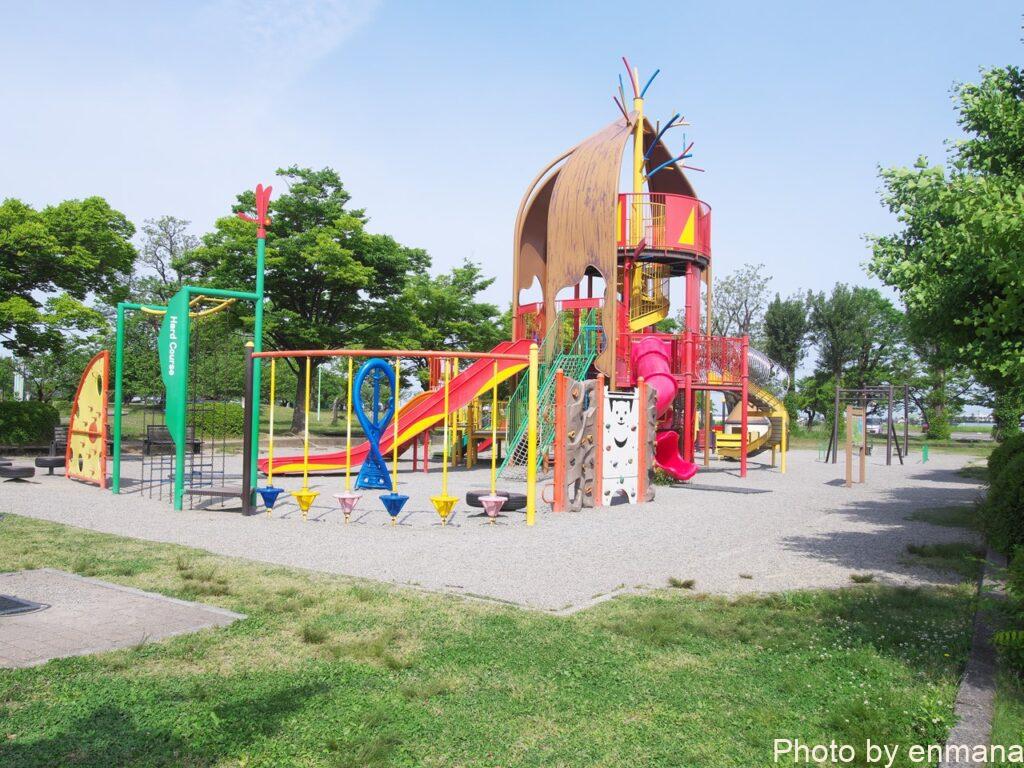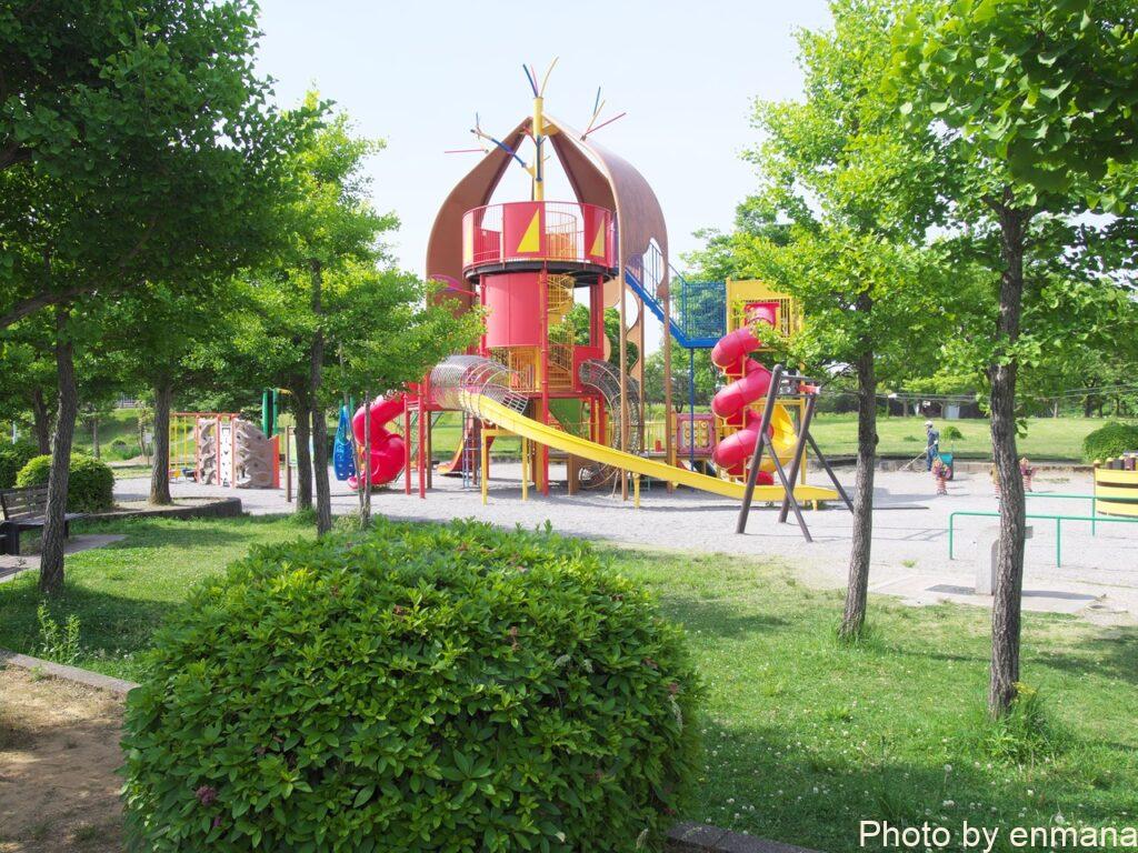 アヤメ類の本数は約300品種60万本あり、とても見ごたえがあります。駐車場の近くには、遊具がある広場や競技場などのスポーツ施設が併設されています。